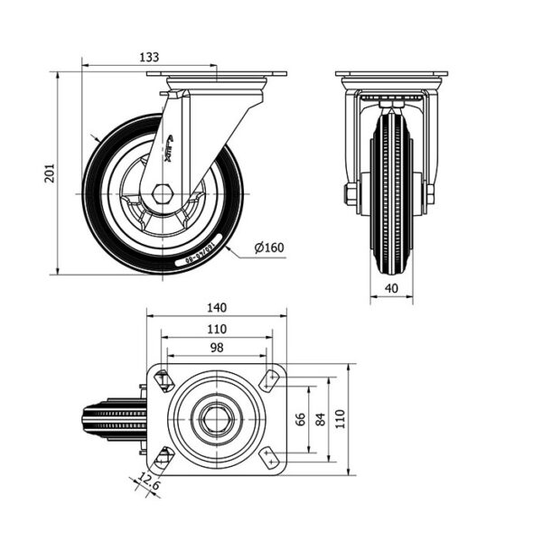 Rueda goma giratoria Alex diametro 160 mm. modelo 2-1071 EAN 8422202210711