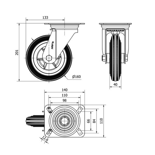Rueda goma giratoria Alex diametro 160 mm. modelo 2-1186 EAN 8422202211862