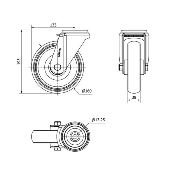 Rueda goma giratoria Alex diametro 160 mm. modelo 2-3248