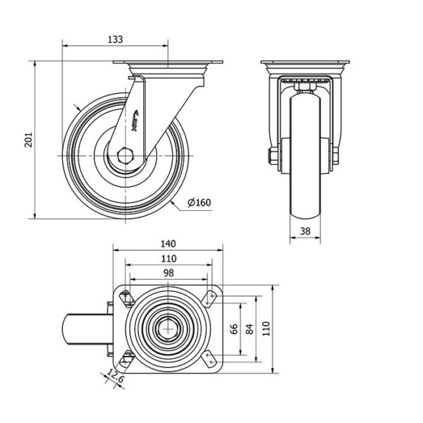 Rueda goma giratoria Alex diametro 160 mm. modelo 2-3268