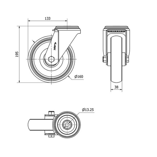 Rueda goma giratoria Alex diametro 160 mm. modelo 2-3298