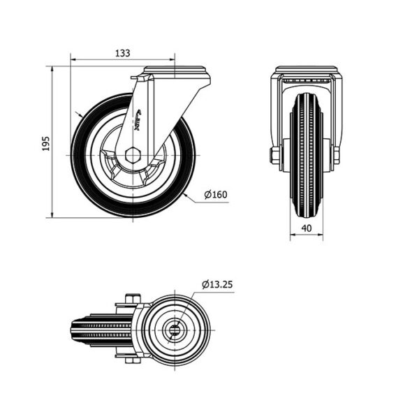 Rueda goma giratoria Alex diametro 160 mm. modelo 2-3410