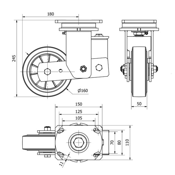 Rueda goma giratoria Alex diametro 160 mm. modelo 2-3960
