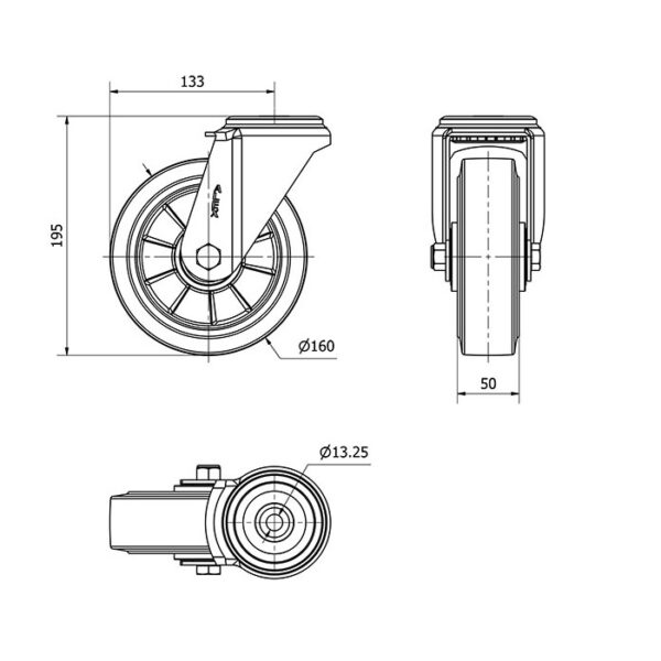 Rueda goma giratoria Alex diametro 160 mm. modelo 2-4363