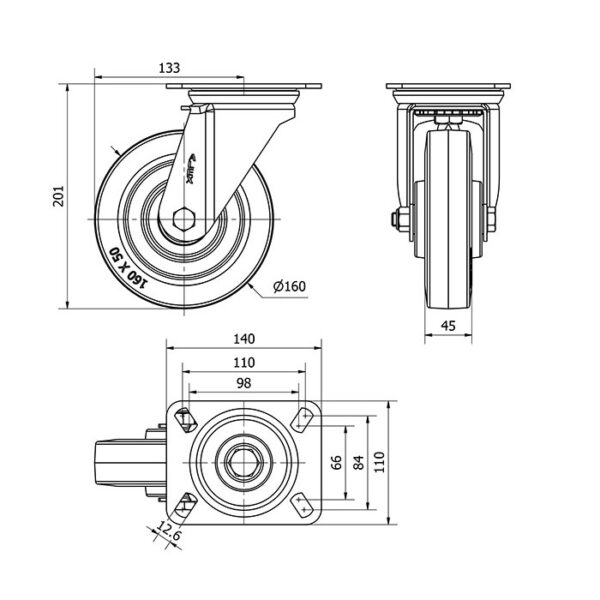 Rueda goma giratoria Alex diametro 160 mm. modelo 2-4462 EAN 8422202244624