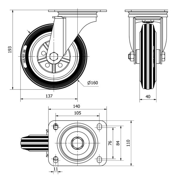 Rueda goma giratoria Alex diametro 160 mm. modelo TW0271 EAN 8422202002712