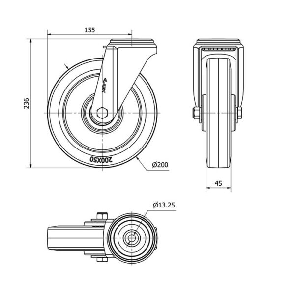 Rueda goma giratoria Alex diametro 200 mm. 2-4472