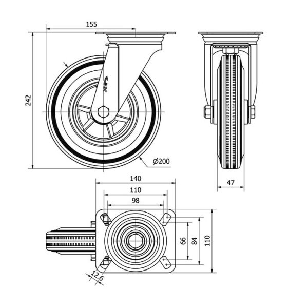 Rueda goma giratoria Alex diametro 200 mm. 2-4758