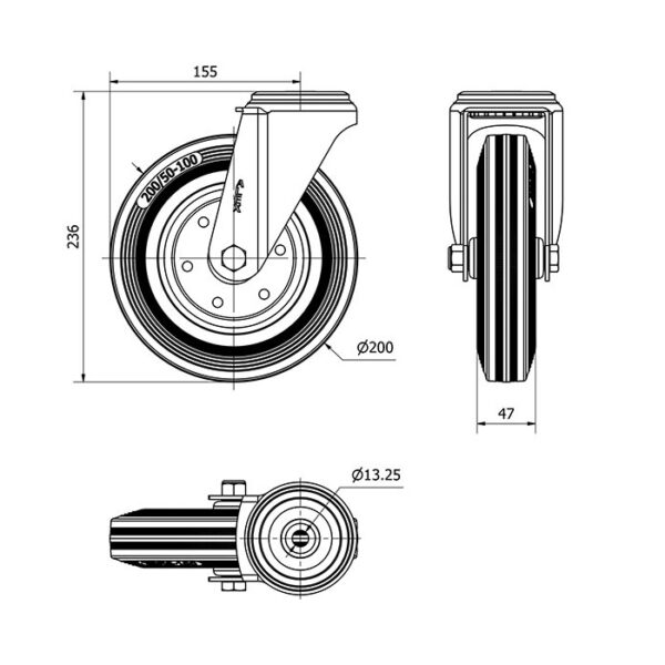 Rueda goma giratoria Alex diametro 200 mm. modelo 2-1024