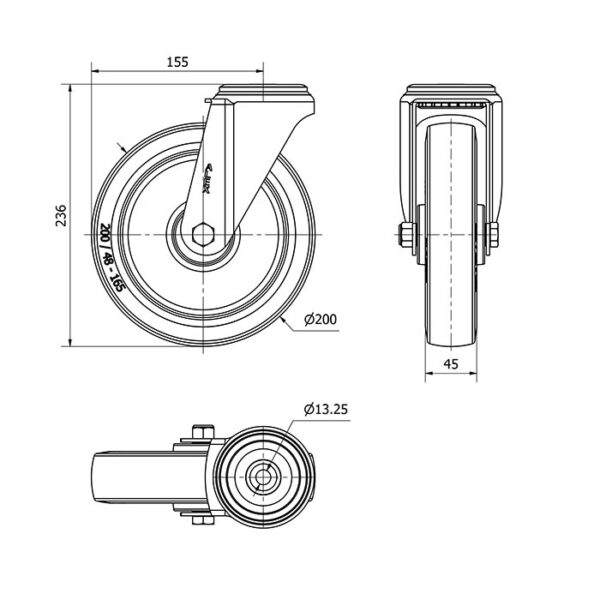 Rueda goma giratoria Alex diametro 200 mm. modelo 2-3780 EAN 8422202237800