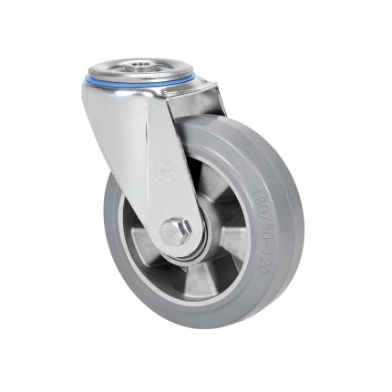 La serie de ruedas Alex ZV-DEGB son ruedas con núcleo de aluminio y banda de goma elástica gris, con una dureza 70? shore A, indicadas para soportar cargas hasta 450 Kg. Se utilizan en carros de herramientas, carros tubulares, logística interna, útiles de transporte, plataformas elevadoras, talleres, carros de transporte de alimentación, cocinas, cantinas, comedores, restaurantes, supermercados, barredoras y pulidoras y maquinas ligeras. DEGB: ideal para el traslado manual de cargas medianas y desplazamiento silencioso. Buena absorción de golpes y vibraciones. No deja huella. Máxima protección de los suelos y del equipo. Ideal para suelos irregulares.