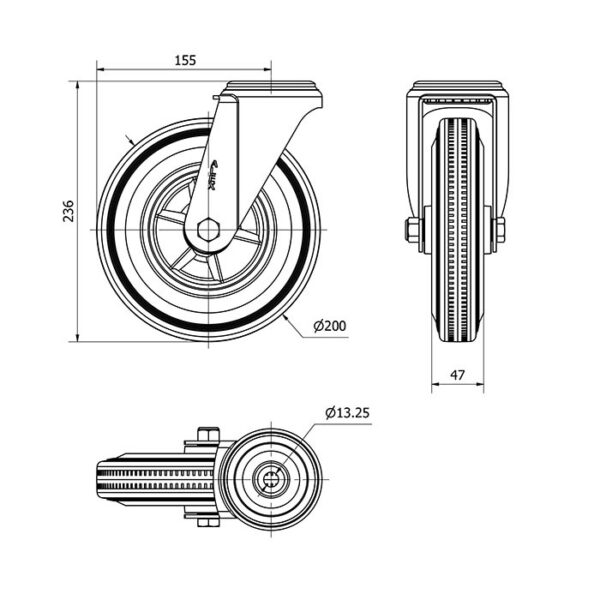 Rueda goma giratoria Alex diametro 200 mm. modelo 2-4761 EAN 8422202247618