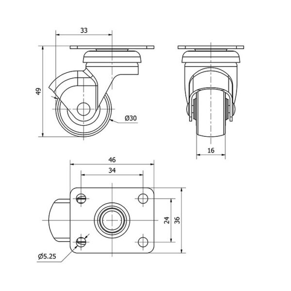 Rueda goma giratoria Alex diametro 30 mm. modelo 1-0278