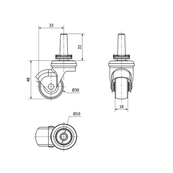 La serie de ruedas Alex H-PGI está indicada para el sector de restauración y mobiliario. Se utilizan en expositores, muebles, estanterías, percheros, mobiliario pequeño, etc.