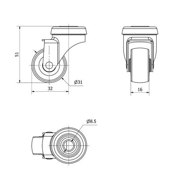 Rueda goma giratoria Alex diametro 30 mm. modelo TW0154
