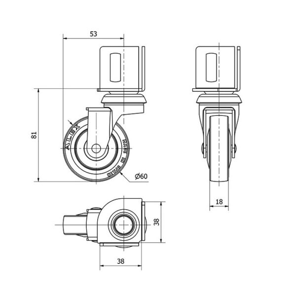 Rueda goma giratoria Alex diametro 60 mm. 1-0231