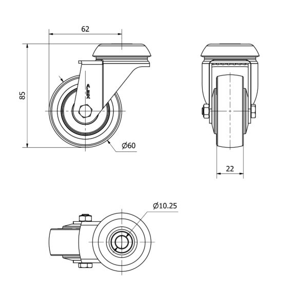 Rueda goma giratoria Alex diametro 60 mm. 2-4508