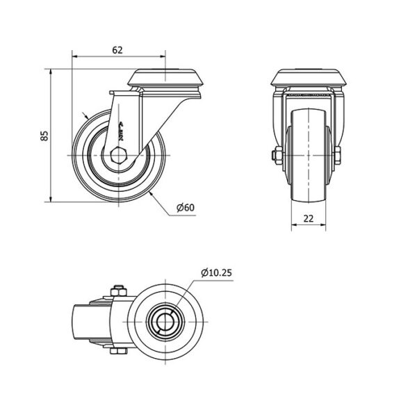 Rueda goma giratoria Alex diametro 60 mm. modelo 1-0170