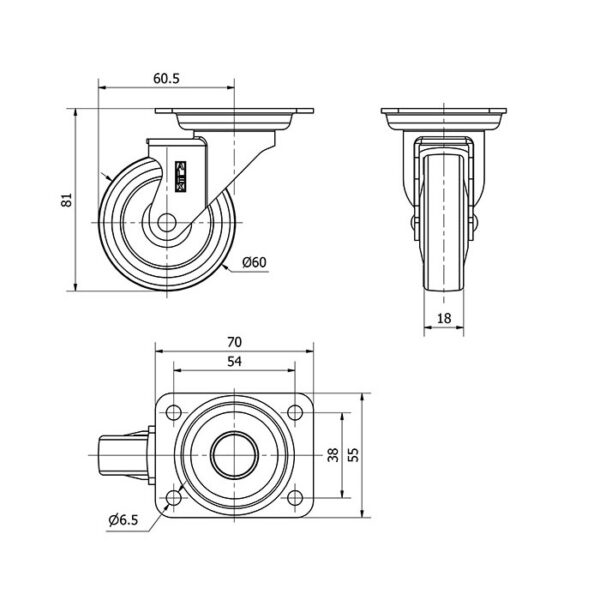 Rueda goma giratoria Alex diametro 60 mm. modelo 1-0703