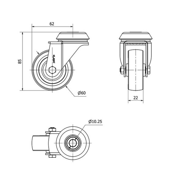 Rueda goma giratoria Alex diametro 60 mm. modelo 2-5143