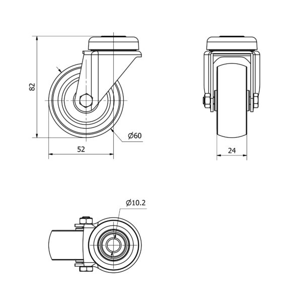 Rueda goma giratoria Alex diametro 60 mm. modelo TW0242