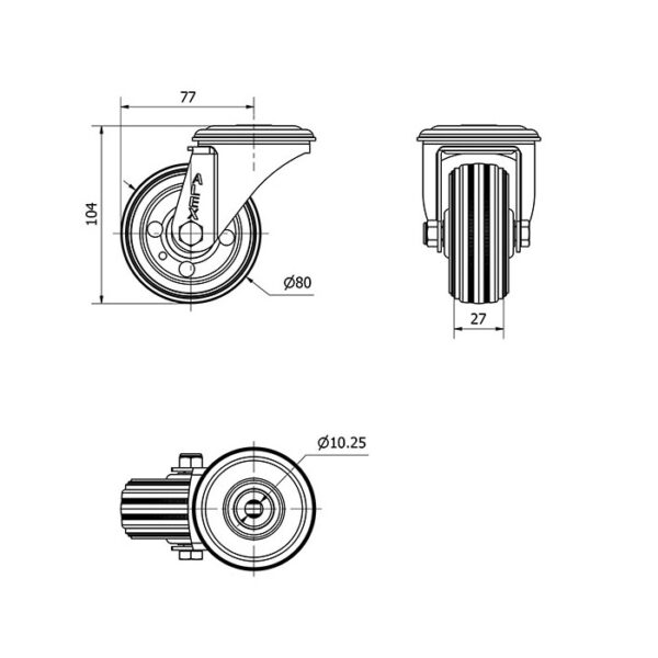 Rueda goma giratoria Alex diametro 80 mm. modelo 2-1388