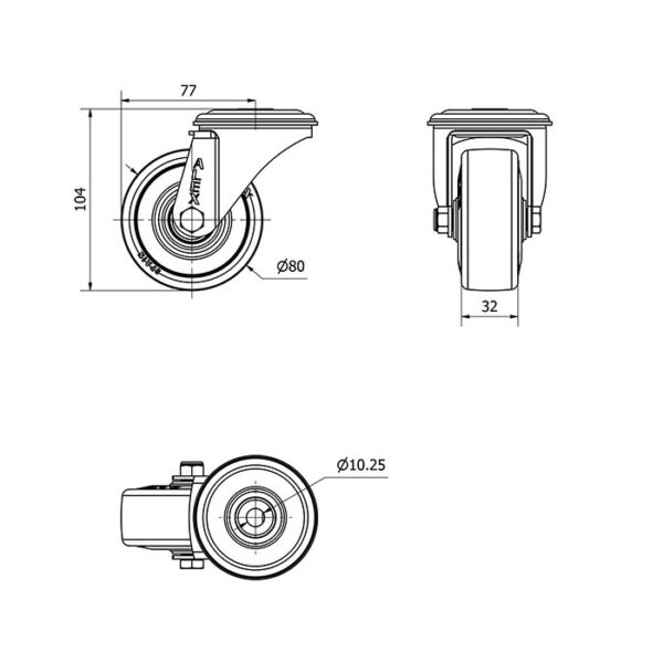 Rueda goma giratoria Alex diametro 80 mm. modelo 2-1404