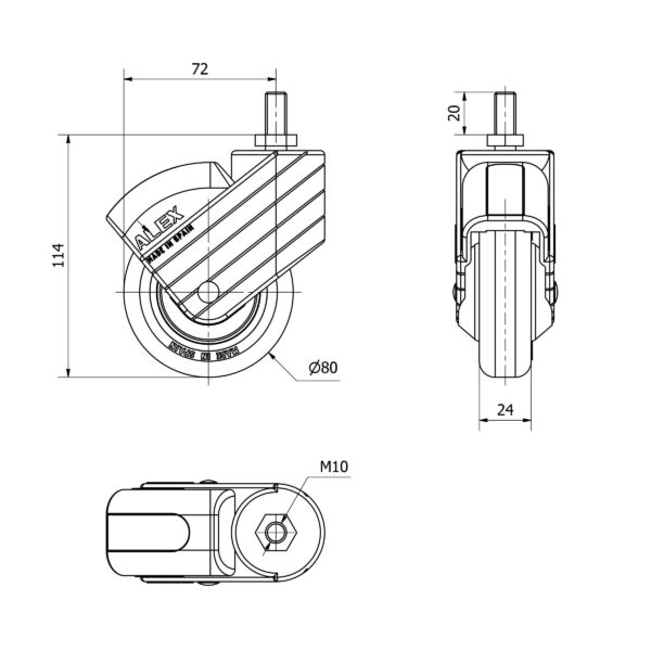 Rueda goma giratoria Alex diametro 80 mm. modelo 2-3208