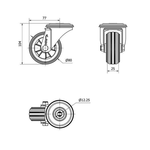 Rueda goma giratoria Alex diametro 80 mm. modelo 2-4063