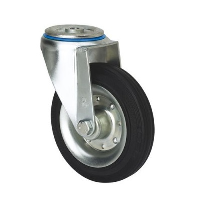 La serie de ruedas Alex ZV-BS son de núcleo metálico con banda de goma negra, indicadas para soportar cargas hasta 250 Kg. Se utilizan en carros de herramientas, carros tubulares, gradas móviles, útiles de transporte, plataformas elevadoras, talleres, restaurantes, barredoras y pulidoras, soldadura, hormigoneras, grúas móviles, remolques, granjas agrícolas y contenedores. BS: Ruedas suaves y silenciosas. Máxima protección de los suelos. Absorción de golpes y vibraciones.