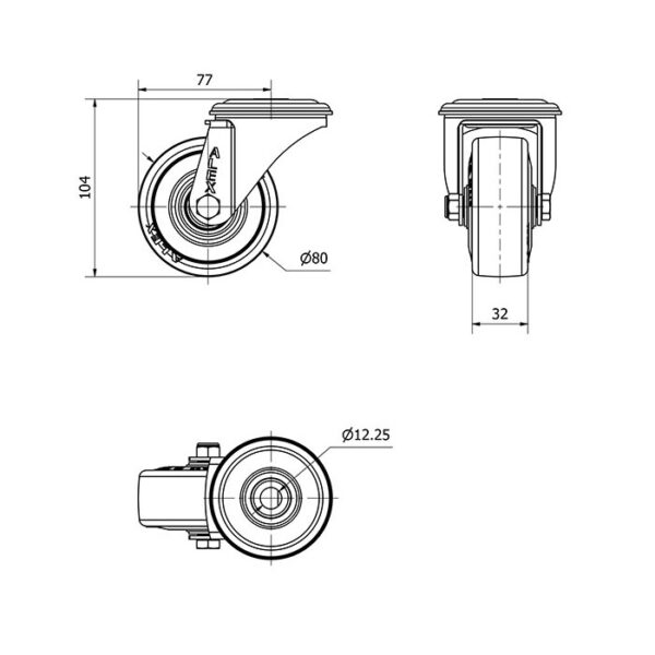 Rueda goma giratoria Alex diametro 80 mm. modelo 2-4070