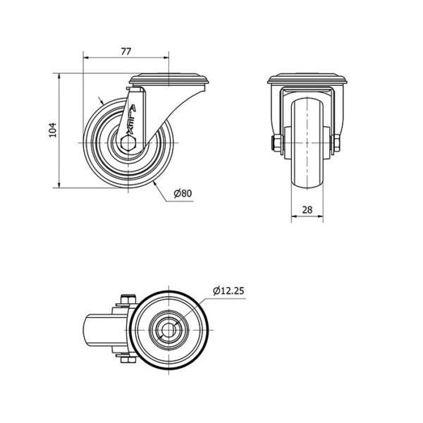 Rueda goma giratoria Alex diametro 80 mm. modelo 2-4569