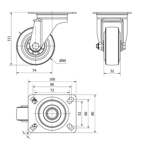 Rueda goma giratoria Alex diametro 80 mm. modelo TW0293 EAN 8422202002934