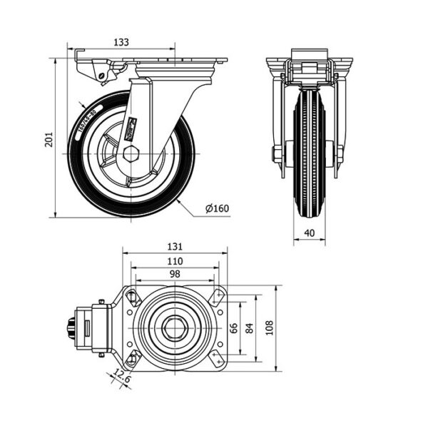Rueda goma giratoria con bloqueo direccional Alex diametro 160 mm. modelo 2-3329