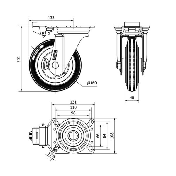 Rueda goma giratoria con bloqueo direccional Alex diametro 160 mm. modelo 2-3330 EAN 8422202233307