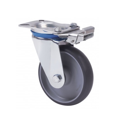 La serie de ruedas Alex ZV-PGZ son ruedas de goma gris inyectada con el núcleo de poliamix, indicadas para soportar cargas hasta 180 Kg. Se utilizan en útiles de transporte logístico, carros de transporte de alimentación, cocinas, cantinas, empresas de alimentación, supermercados, maquinaria ligera y jaulas de transporte. PGZ: No manchan el suelo. Facilidad de movimiento con carga.