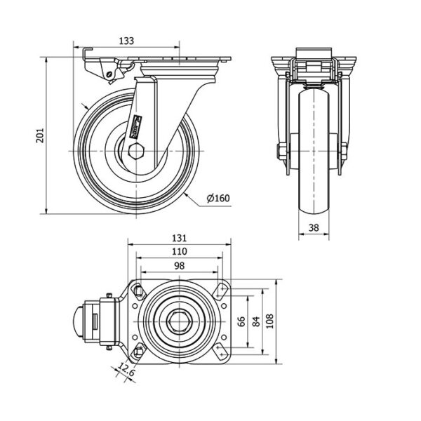 Rueda goma giratoria con bloqueo direccional Alex diametro 160 mm. modelo 2-3435 EAN 8422202234359