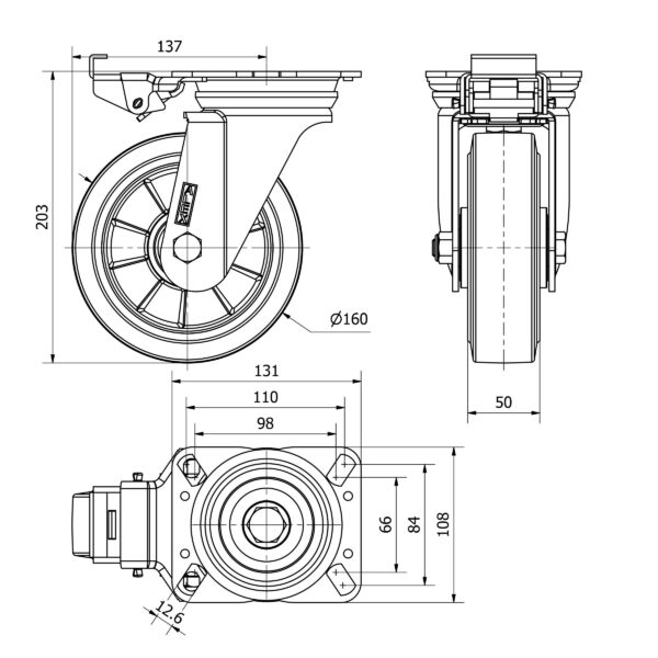 Rueda goma giratoria con bloqueo direccional Alex diametro 160 mm. modelo 2-4375 EAN 8422202243757