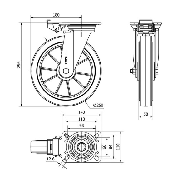 Rueda goma giratoria con bloqueo direccional Alex diametro 250 mm. 2-0407