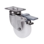 La serie de ruedas Alex BHI INOX-PGI son de goma gris inyectada, con todos sus componentes de acero inoxidable (AISI-304), indicadas para soportar cargas hasta 60 Kg. Se utilizan en exteriores, carros de transporte de alimentación, cantinas, comedores, restaurantes, empresas de alimentación, máquinas de embalajes y cintas transportadoras. PGI: No ralla el suelo. Silenciosa y no deja huella.