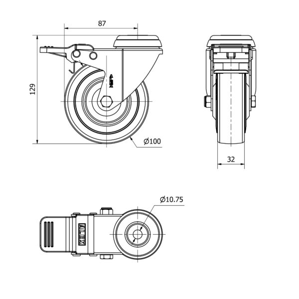 Rueda goma giratoria con freno Alex diametro 100 mm. 2-4596