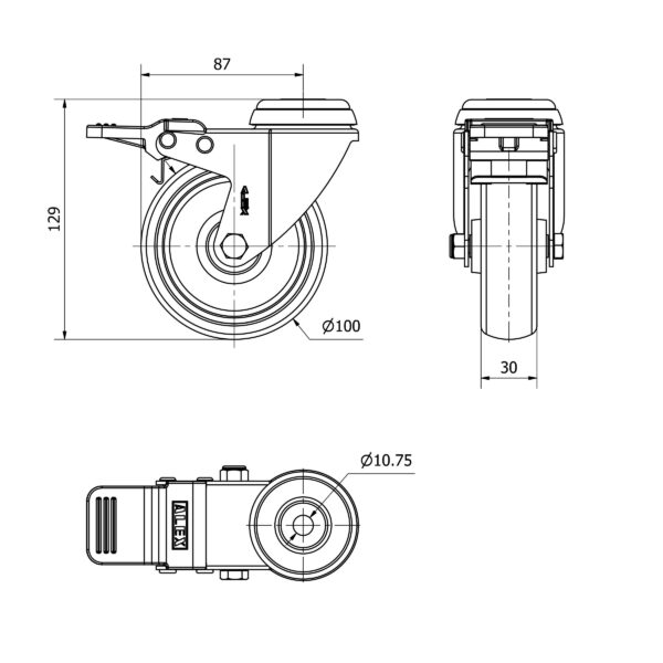 Rueda goma giratoria con freno Alex diametro 100 mm. 2-4612