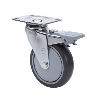 Rueda goma giratoria con freno Alex diametro 100 mm. modelo 2-2714