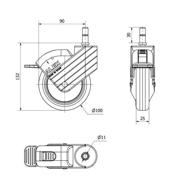 Rueda goma giratoria con freno Alex diametro 100 mm. modelo 2-3324