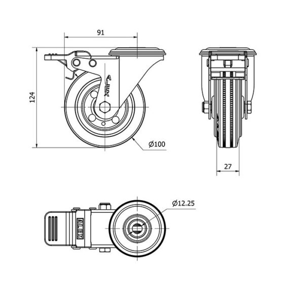 Rueda goma giratoria con freno Alex diametro 100 mm. modelo 2-4088
