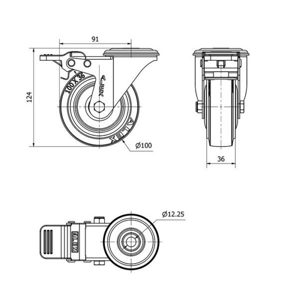 Rueda goma giratoria con freno Alex diametro 100 mm. modelo 2-4451