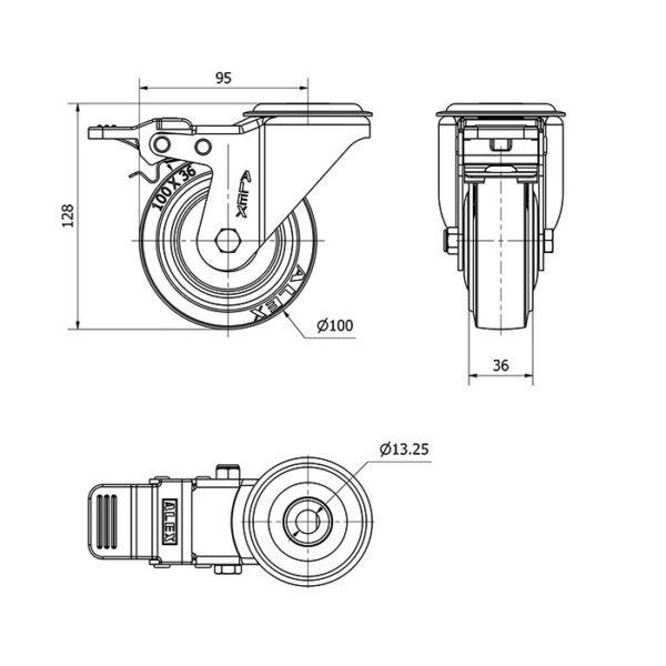 Rueda goma giratoria con freno Alex diametro 100 mm. modelo 2-4456