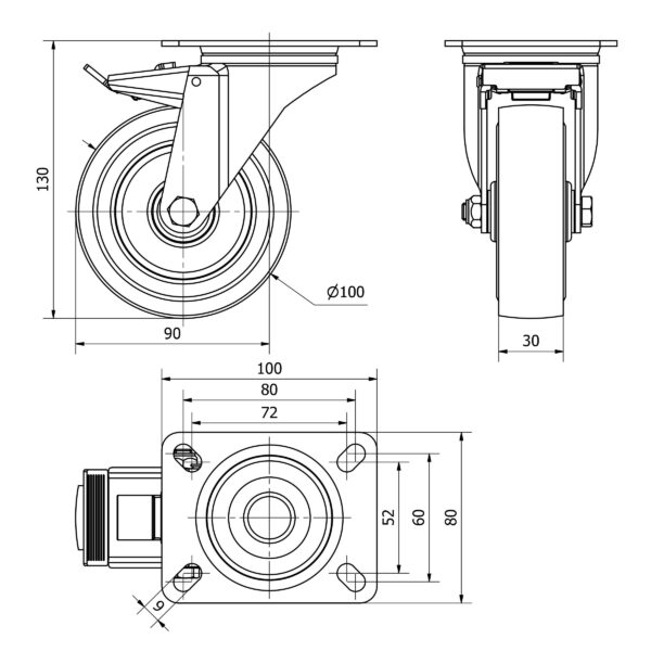 Rueda goma giratoria con freno Alex diametro 100 mm. modelo TW0041 EAN 8422202000411