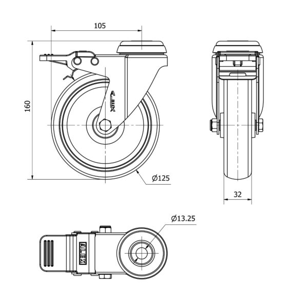 Rueda goma giratoria con freno Alex diametro 125 mm. 2-4628