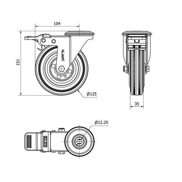 Rueda goma giratoria con freno Alex diametro 125 mm. 2-4842